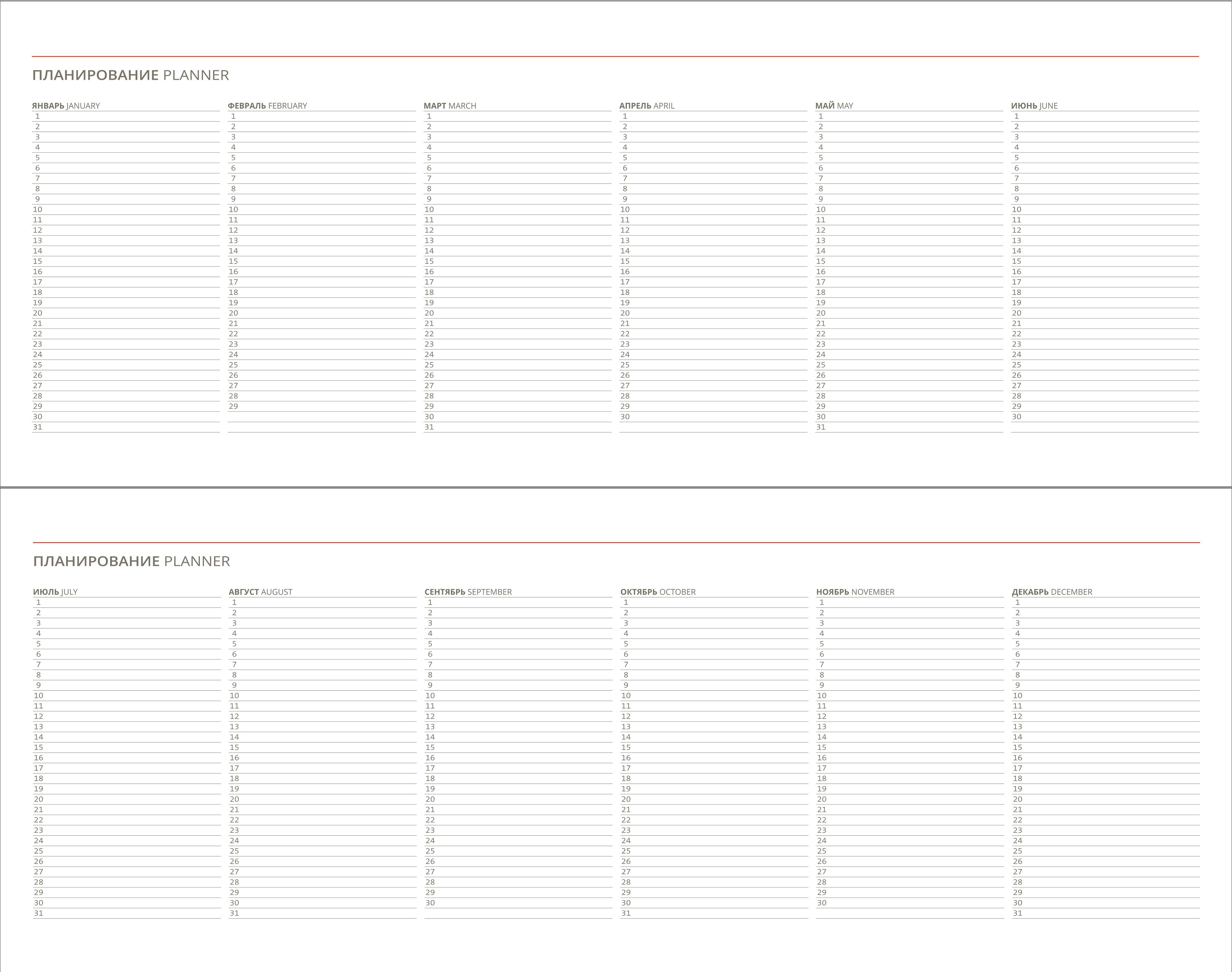 БЛОК Планинг датированный V48 29,8х10,5 см. Формат 10,5х29,8 см, датированный блок, серо-бордовый цвет графики, 128 стр, белая бумага, справочная информация.