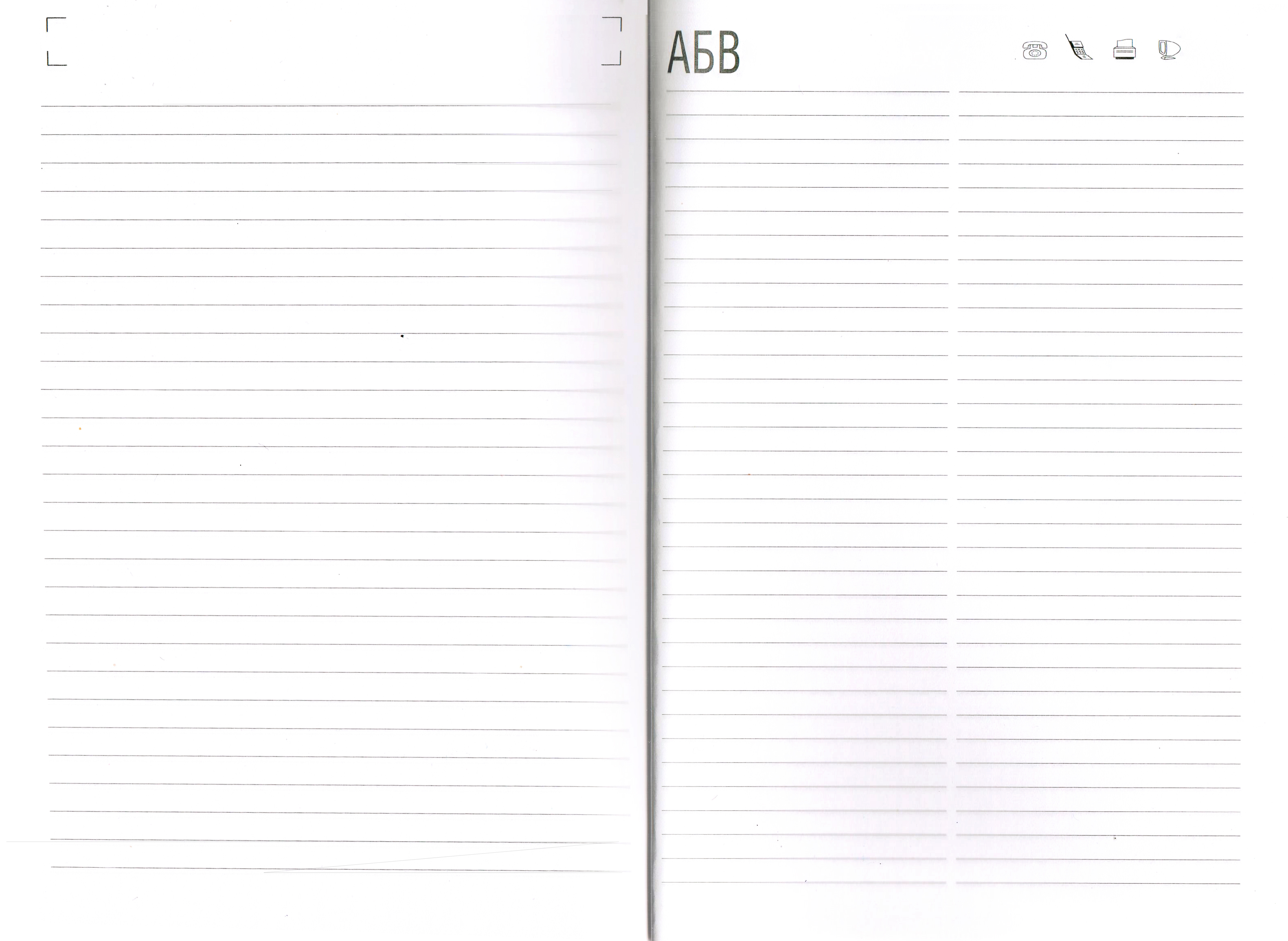 Формат 14,5х20,5 см, недатированный блок, серый цвет графики, 352 стр, белая бумага, шёлковое ляссе, справочная информация. CARIBE - обложка на бумажной основе.