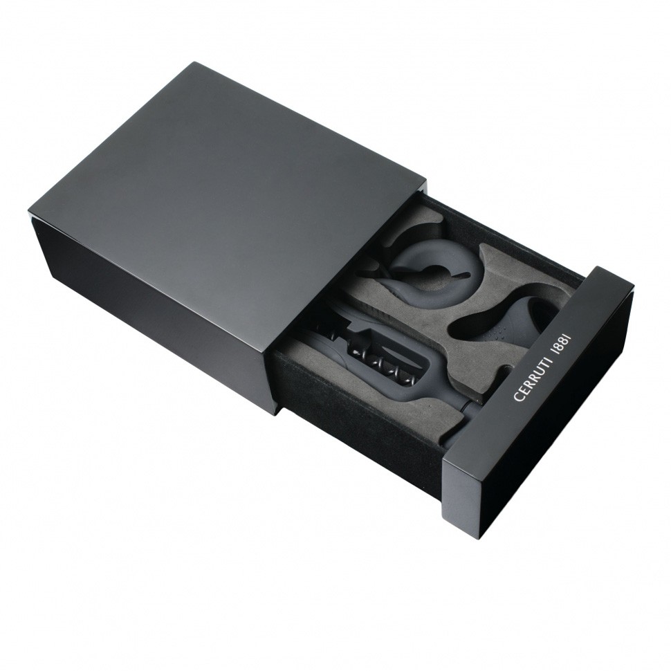 Набор для вина, выполненный в оригинальном и необычном дизайне, станет не только функциональным подарком, но и стильным украшением кухни. В состав набора входят: штопор, воротник, кольцо, пробка. Все элементы набора заключены в подарочную коробку с фирменной надписью CERRUTI 1881.
