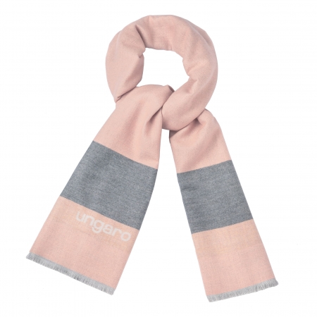 Шарфы линии "Пиа" изготовлены из мягких и эластичных материалов. Прекрасно согласующиеся со временем, они обратимы, очень покрывают и их прикосновение очень роскошно. Доступны два мягких, свежих и нейтральных цвета: тёмно-серый и розово-серый с контрастной подписью Ungaro.