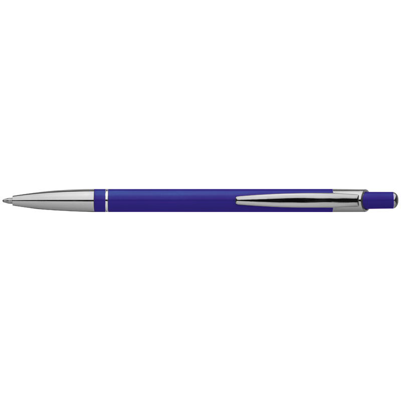 Классическая ручка из металла. Имеет синий стержень. Логотип может быть помещен под клипом.