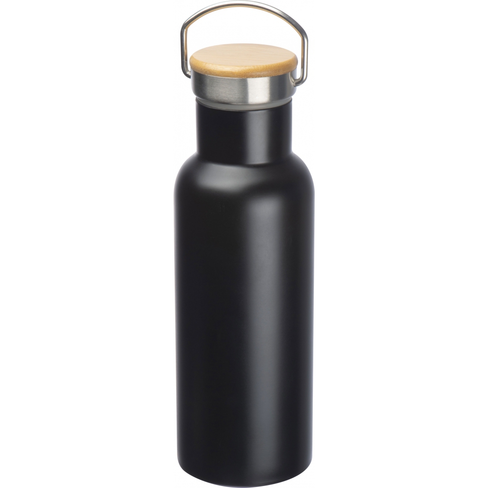 Термическая бутылка из нержавеющей стали, емкостью 500 мл. Он имеет ручку для переноски и крышку с силиконовой прокладкой. Логотип выгравирован непосредственно на бутылке.