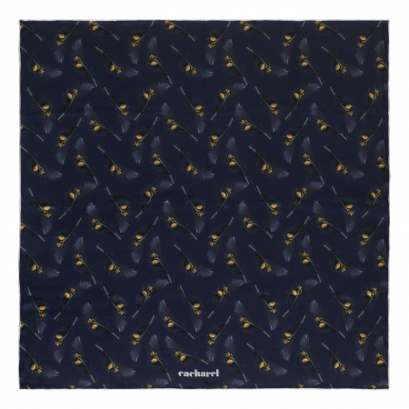 Свежий и женственный шёлковый платок с темно-синим цветочным принтом, фукцией и белым цветочным принтом, выполненный в стиле Джиада на 100%.
