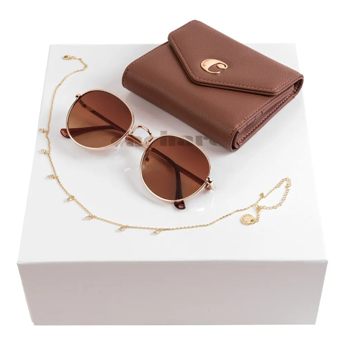 Набор из дамского кошелька Alma Camel, солнцезащитных очков Alma Gold и ожерелья Odeon Gold. Set CEL219Z + CGS219E + CJC220E.