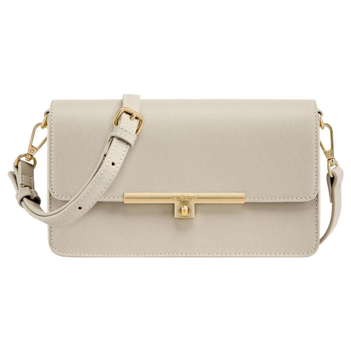Дамская сумочка Séraphine Light Grey воплощает изысканную элегантность благодаря своему современному дизайну. Изготовленная из веганской кожи с сафьяновой текстурой, она украшена эксклюзивной золотистой застёжкой-поворотным замком с выгравированным логотипом Cacharel. Золотистая отделка придаёт сумке женственный и изысканный вид, а сдержанный золотистый логотип Cacharel из ТПУ на задней стороне – тонкий фирменный штрих. Сумка поставляется с регулируемым и съёмным ремешком, её можно носить как клатч, на плече или через плечо. Внутри имеется отделение на молнии. Сумка доступна в сером, светло-сером и чёрном цветах.
