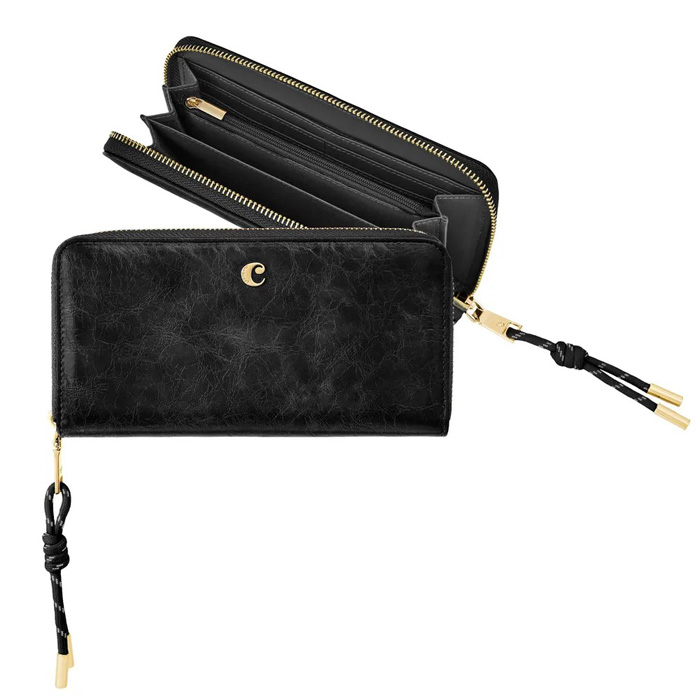 Элегантный кошелёк на молнии Philomène Burgundy изготовлен из глянцевой текстуры, напоминающей мятую кожу, и украшен золотистой буквой "C". Застёжка-молния, выполненная в практичном стиле, украшена шнуром, который прекрасно контрастирует с шикарной и утончённой золотистой отделкой кошелька. Большое основное отделение с двенадцатью слотами для карт, отделением для монет на молнии и двумя отделениями для банкнот обеспечивает одновременно стиль и практичность. Кошелёк доступен в шикарной палитре чёрного, коричневого и бордового цветов.