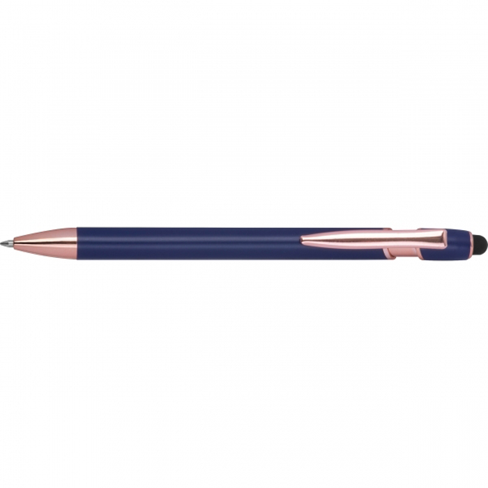 Полугелевая ручка BELO HORIZONTE из переработанного алюминия с наконечником для сенсорного экрана и заправкой синего цвета большой ёмкости (ширина наконечника 1 мм). Ваш логотип может быть нанесён на корпус ручки с помощью лазерной гравировки.