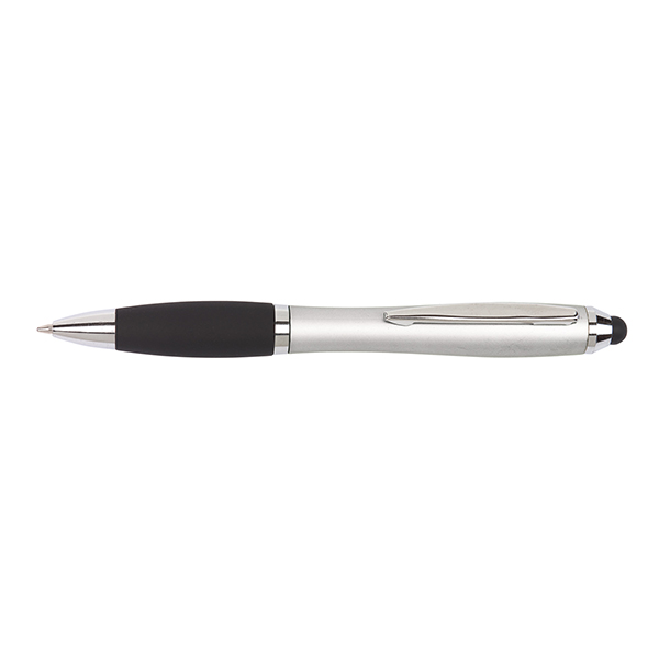 Шариковая ручка SWAY TOUCH с суженным корпусом, с поворотным механизмом, с резиновым покрытием поверхности корпуса и стилусом для сенсорного экрана на конце, синие чернила | Упаковка: 50/500 шт. | Размер: 13,5 cм | Материал: Пластик / Сталь