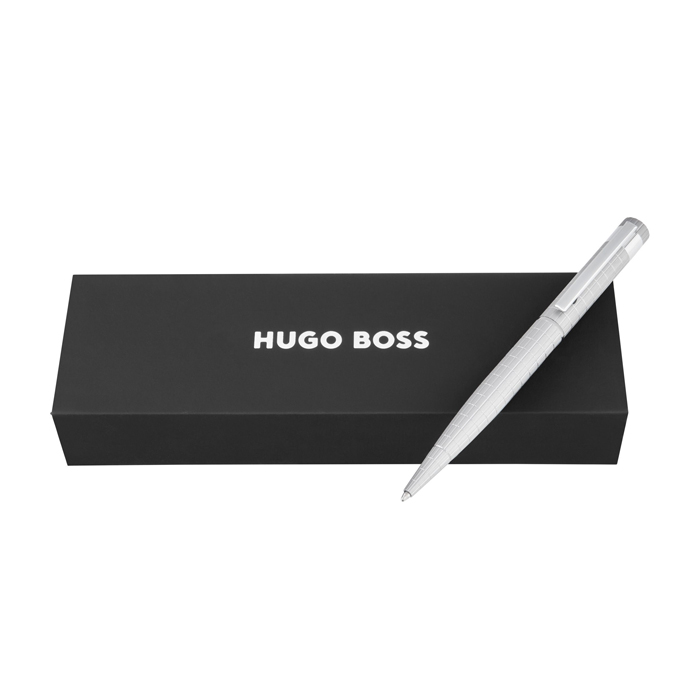 В новом издании шариковой авторучки Loop Bauhaus Grey от Hugo Boss на алюминиевую поверхность нанесён геометрический сетчатый узор. Такая текстура придаёт ручке изящную графическую изюминку, предлагая свежий визуальный элемент, который подчеркивает её динамичную форму. В качестве завершающего штриха в верхней части ручки находится эмблема в виде двойной буквы B.