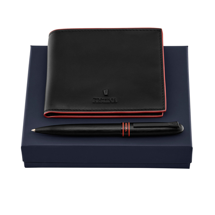Набор из кошелька Black Edition Red и шариковой ручки Classicals Brushed Black Edition Red. Set FLW528P + FSW6414P. Материал: алюминий, латунь, воловья кожа, полиэстер. Размер: 162 x 127 x 40 мм.