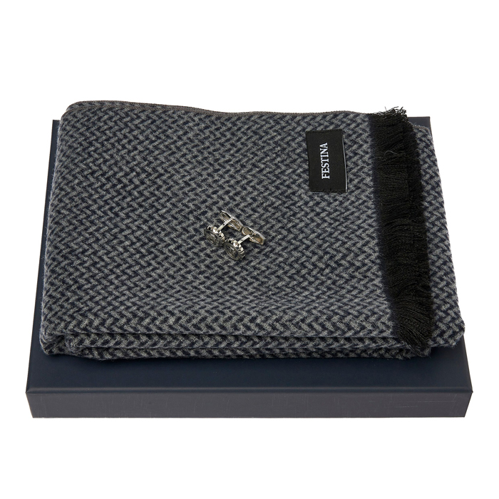 Набор из шарфа Classicals Grey и запонок Button Shinny Chrome. Set FFE424H + FJM481B. Материал: нержавеющая сталь, полиэстер, акрил, нейлон, шерсть. Размер: 245 x 215 x 55 мм.