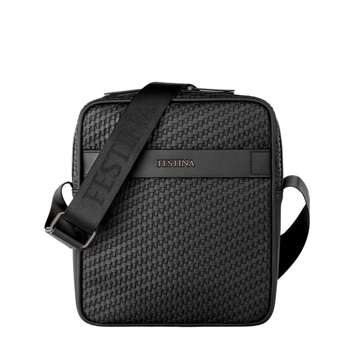 Сумка репортера Interlace Black от Festina, отличающаяся текстурой, выполненной в виде тиснёного плетёного узора, который придаёт ей роскошный и элегантный вид. Сумка имеет регулируемый ремешок, практичный передний карман, внутреннее отделение на молнии, подкладку с монограммой и фирменные застёжки-молнии с выгравированным гербом бренда, которые добавляют утончённый завершающий штрих. Материал: поливинилхлорид (ПВХ), полиэстер, цинковый сплав, нейлон. Размер: 210 x 80 x 250 мм.