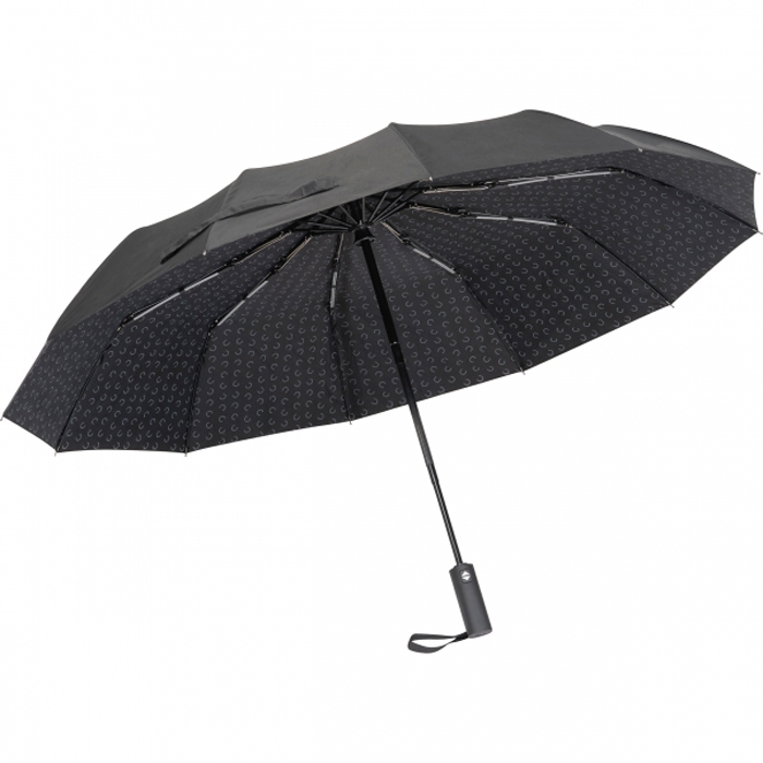 Автоматический зонт с системой открывания-закрывания обеспечит защиту от непогоды благодаря своей ветрозащитной конструкции. Для безопасности зонт оснащен светоотражающей окантовкой, каркас выполнен из стекловолокна. Зонт состоит из 8 панелей. В чехле зонта имеется карабин для крепления к рюкзаку.