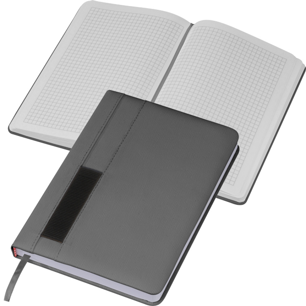 Блокнот А5 в решетку, 192 страницы, имеет закладку и петлью для ручки на обложке.