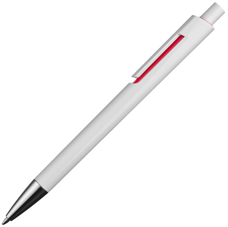 Пластиковая ручка с с синим стержнем и цветным элементом под клипом.